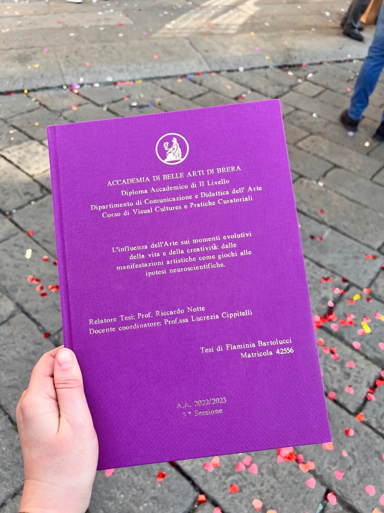 Flaminia Bartolucci discute la sua tesi “L’influenza dell’arte sui momenti evolutivi della vita e della creatività: dalle manifestazioni artistiche come giochi alle ipotesi neuro scientifiche”.